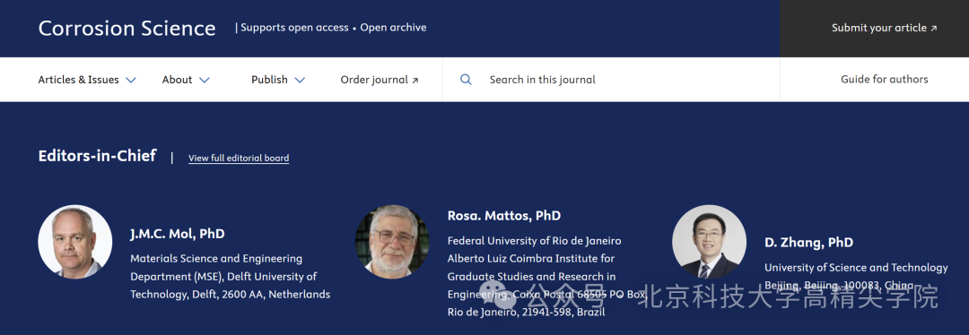 Corrosion Science杂志创刊于1961年,是材料失效与保护研究领域最重要的期刊之一,目前影响因子为8.5(中科院一区)。创刊以来,期刊先后由L.L. Shreir、T.K. Ross、J.C. Scully、G.T. Burstein、J.M.C. Mol和O.R. Mattos等6位学者担任主编。张达威教授自2018年担任该刊副主编,并于2026年1月升任主编一职。